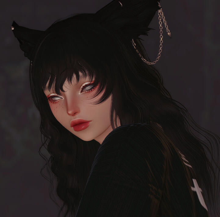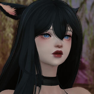 Ears are the first thing one would notice about the miqo'te, far too large and from the looks of it she never grew into them. The second would be her striking silver eyes that stand out in contrast to her raven tresses.